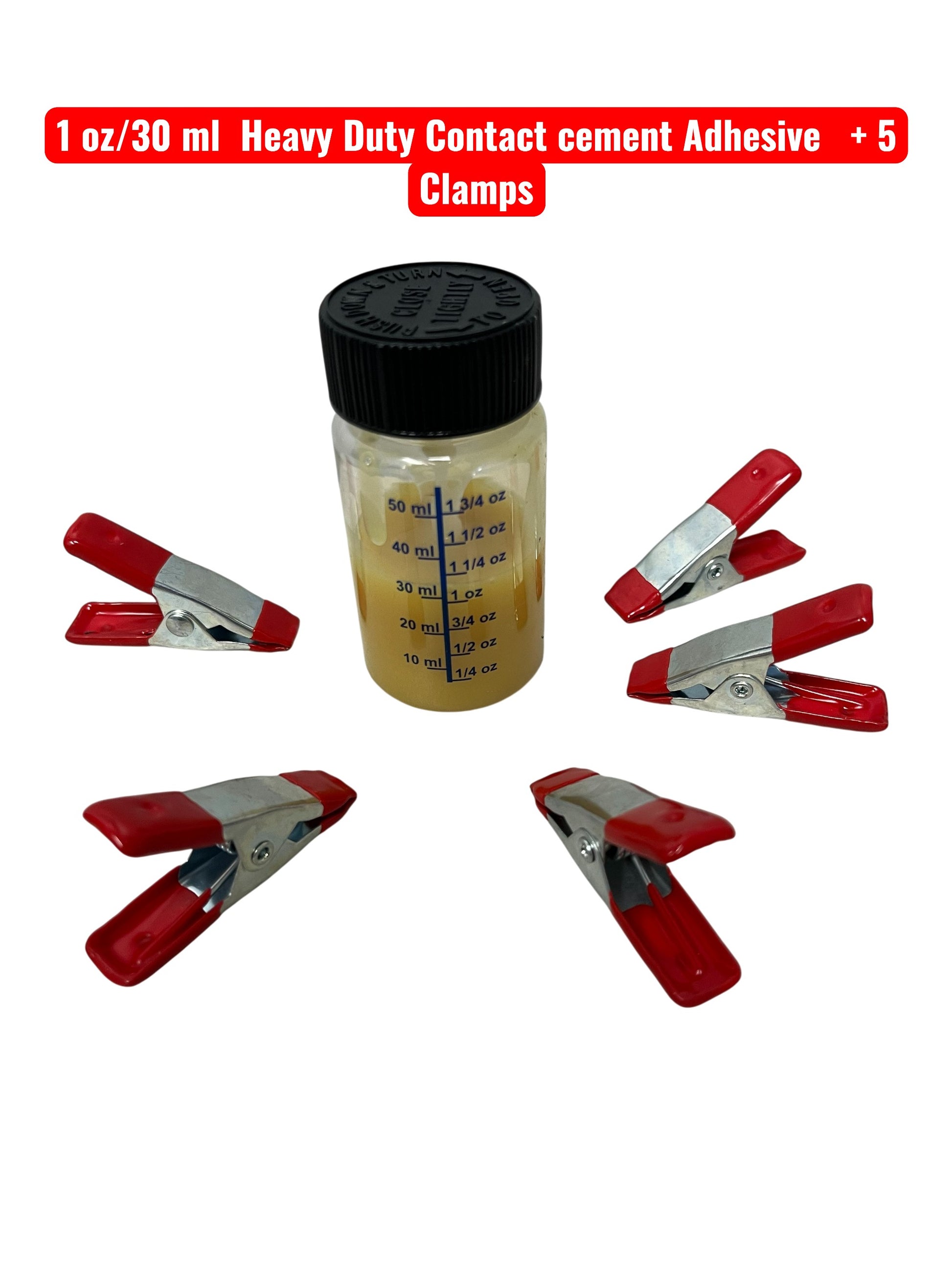 1 oz Heavy Duty Contact Adhesive Glue & 5 Two Inch Clamps